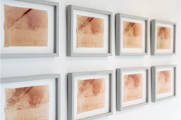 In 36 Days Calendar, these shots are arranged in a grid and form a calendar of the light of these 36 days.The images capture exactly this period of time. In the landscape, the "sun's path" with its changing position, intensity and quality of light is depicted daily. In those images taken on very clear days, a stronger "burn-in" into the substrate is visible than on cloudy ones.