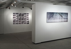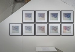 ...Basically, Michael Michlmayr's works are about the relationship between time and space. Often another component comes into play, natural or artificial light. In the project Die Sonne vor meinem Fenster (The Sun outside my window), he photographed the landscape outside his window for 24 hours at a time over a period of 36 days using extreme long exposure, and mapped the "sun's path" with its changing position, intensity and quality of light during this time. While the photographer -or the camera always remained in the same location in the studio, the outside world was constantly in motion. In the photo 36 Days Reference #1, which shows the superimposition of the sunlight trajectories, a compression of the passage of time of these 36 days takes place. In calendar #1 a time calendar of these 36 days becomes visible...
