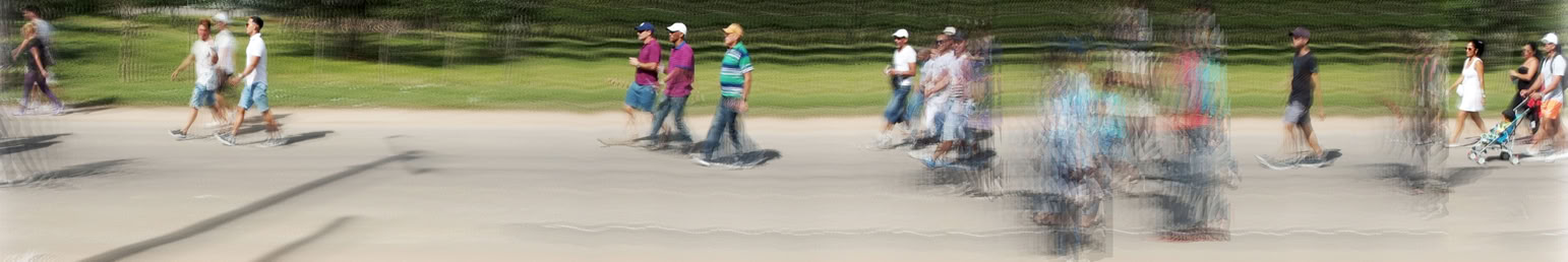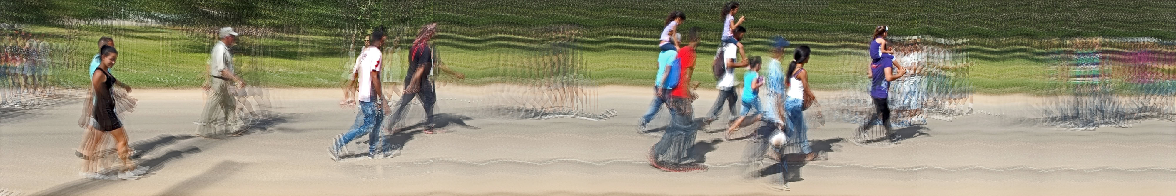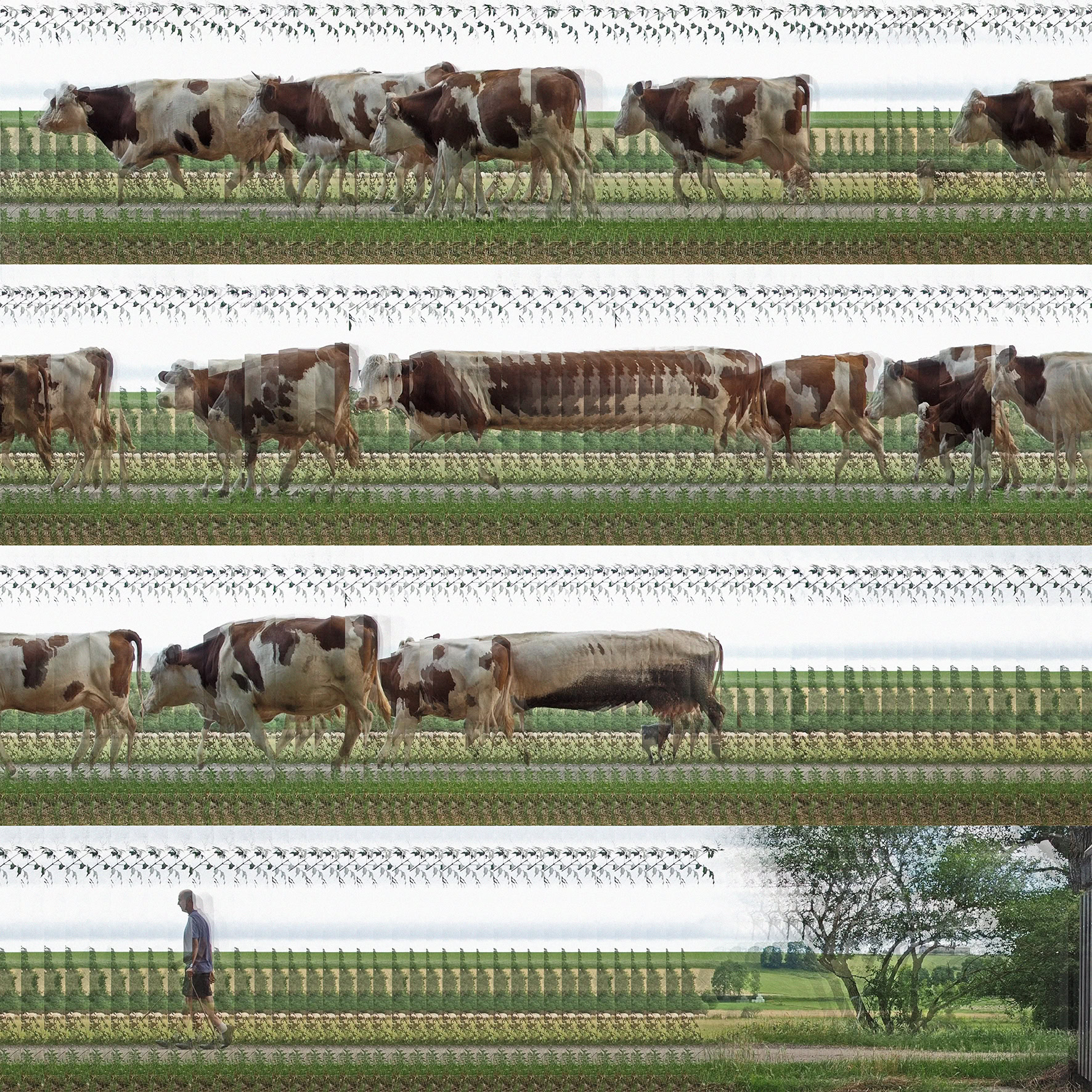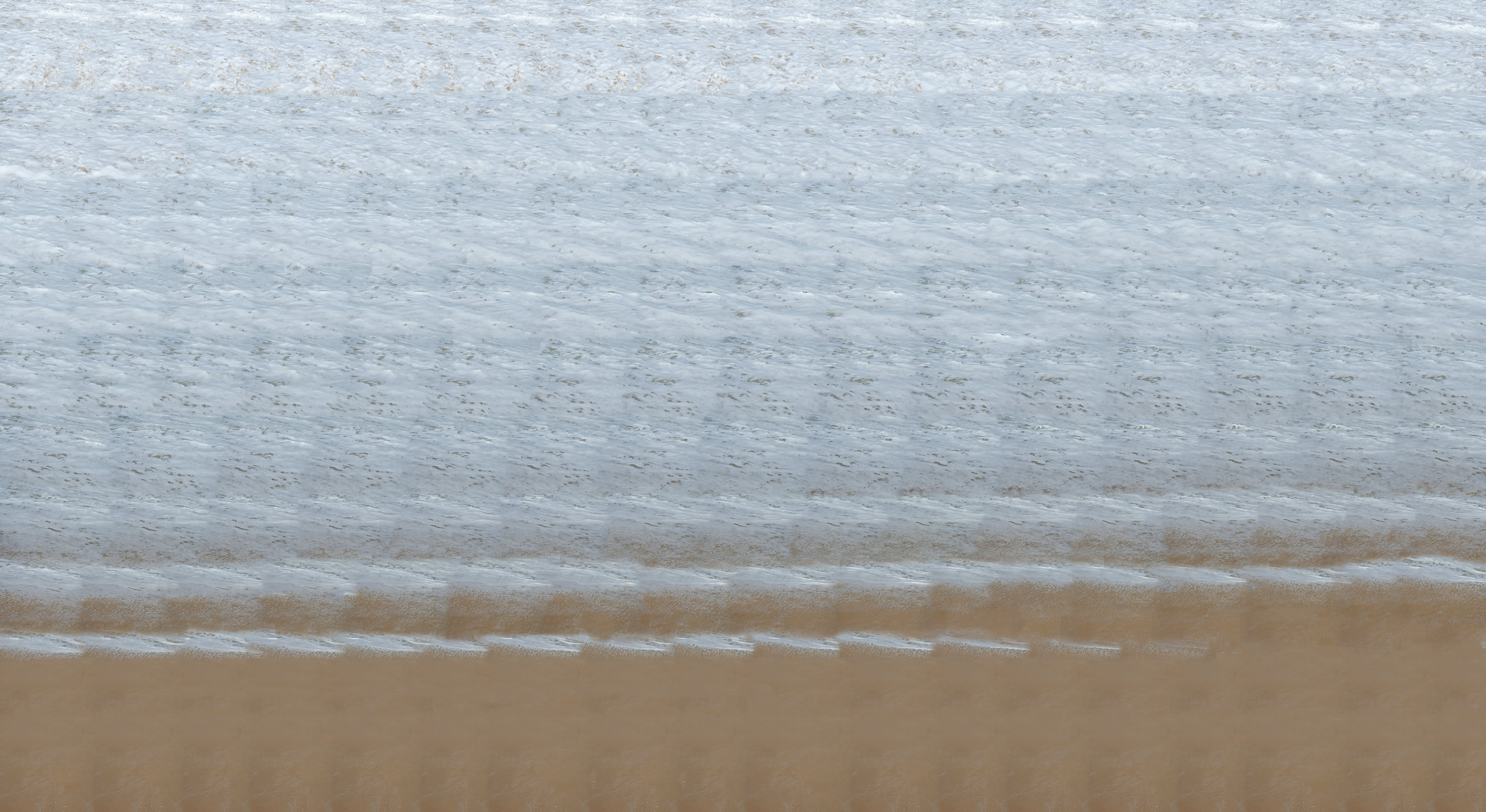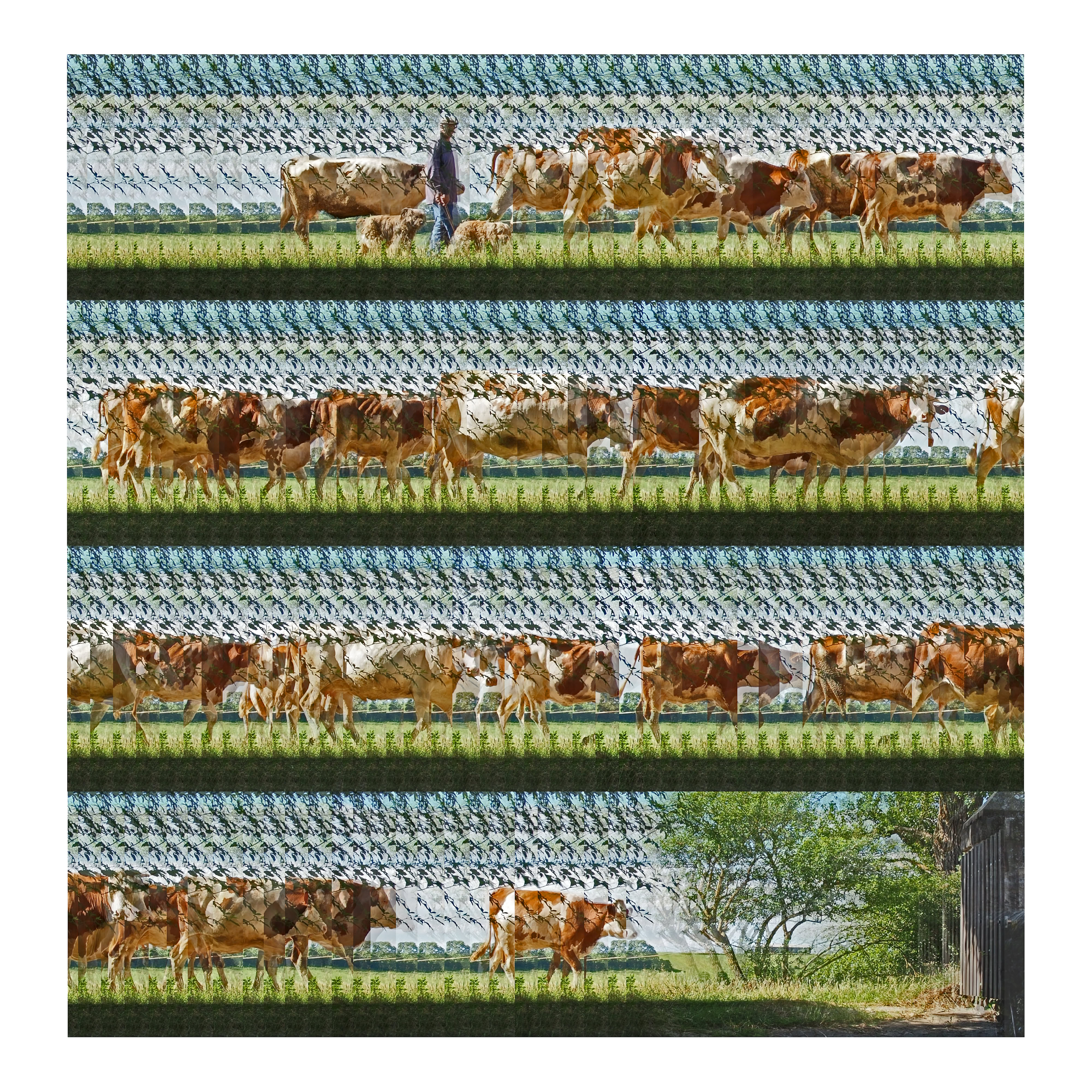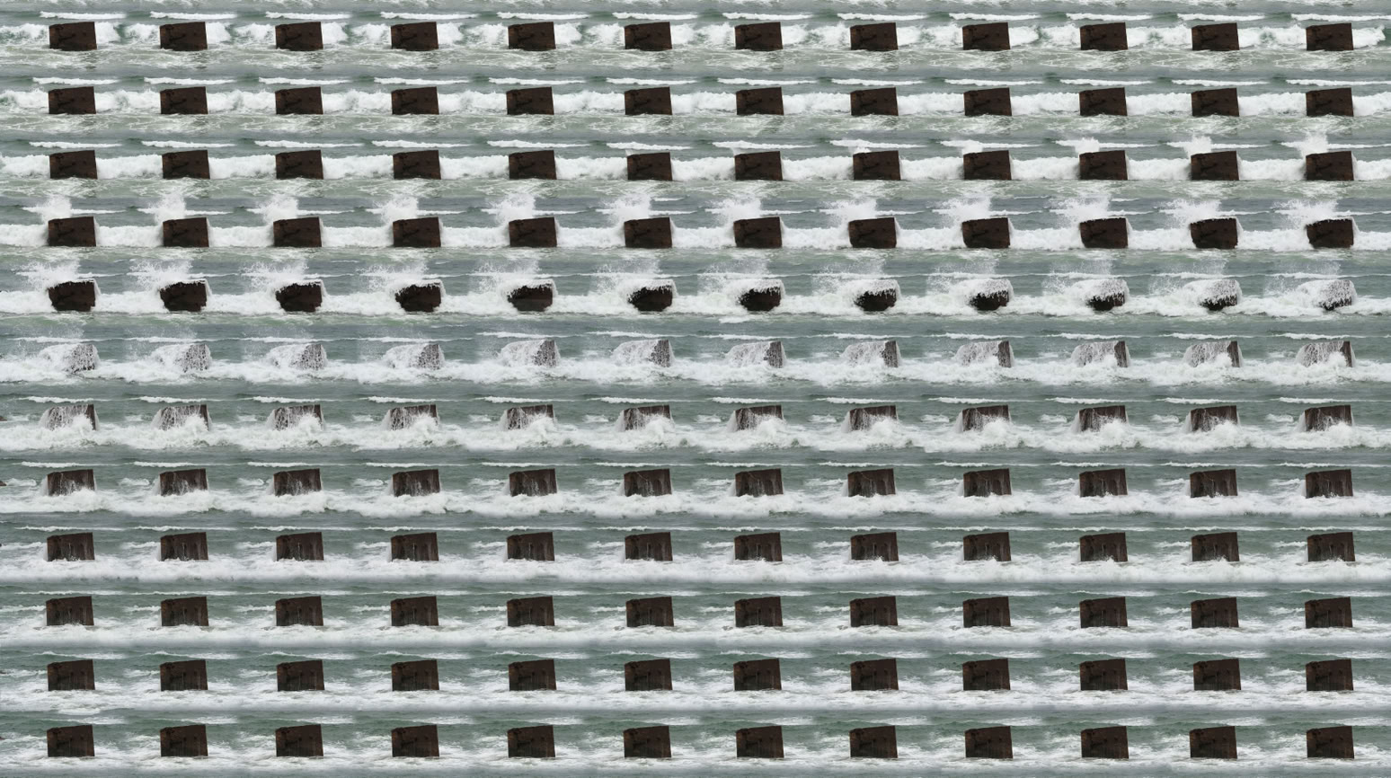 Previously photography fed into video, film, whereas now it is the video itself that forms the essence of his photography. Among his creations is a photograph from the 2018 "short films" series, in which Michlmayr again explores the passage of characters on an escalator. These appear in Escalator VII but in a slightly more blurred (moving) manner than in the original photograph. 25 native/sec images from a video sequence were assembled into a single photograph from a video of a few seconds in length. The resulting photograph "the ghost of the past" shows, in condensed form, four seconds during which the ruins of a World War II bunker on the French coast disappear underwater and reappear with the waves. At each stage of the flood, the movement of the ebb and flow is visible in the final photograph. Thus was born the final image, striking by its aesthetic and graphic quality thanks to the abstraction of the motif and the compression of space-time. Note that the image is still readable from left to right. .[…]