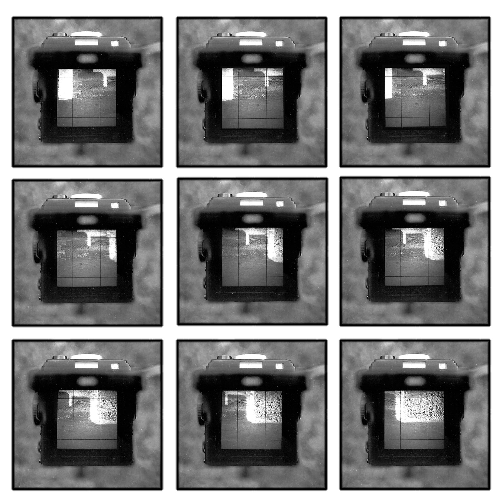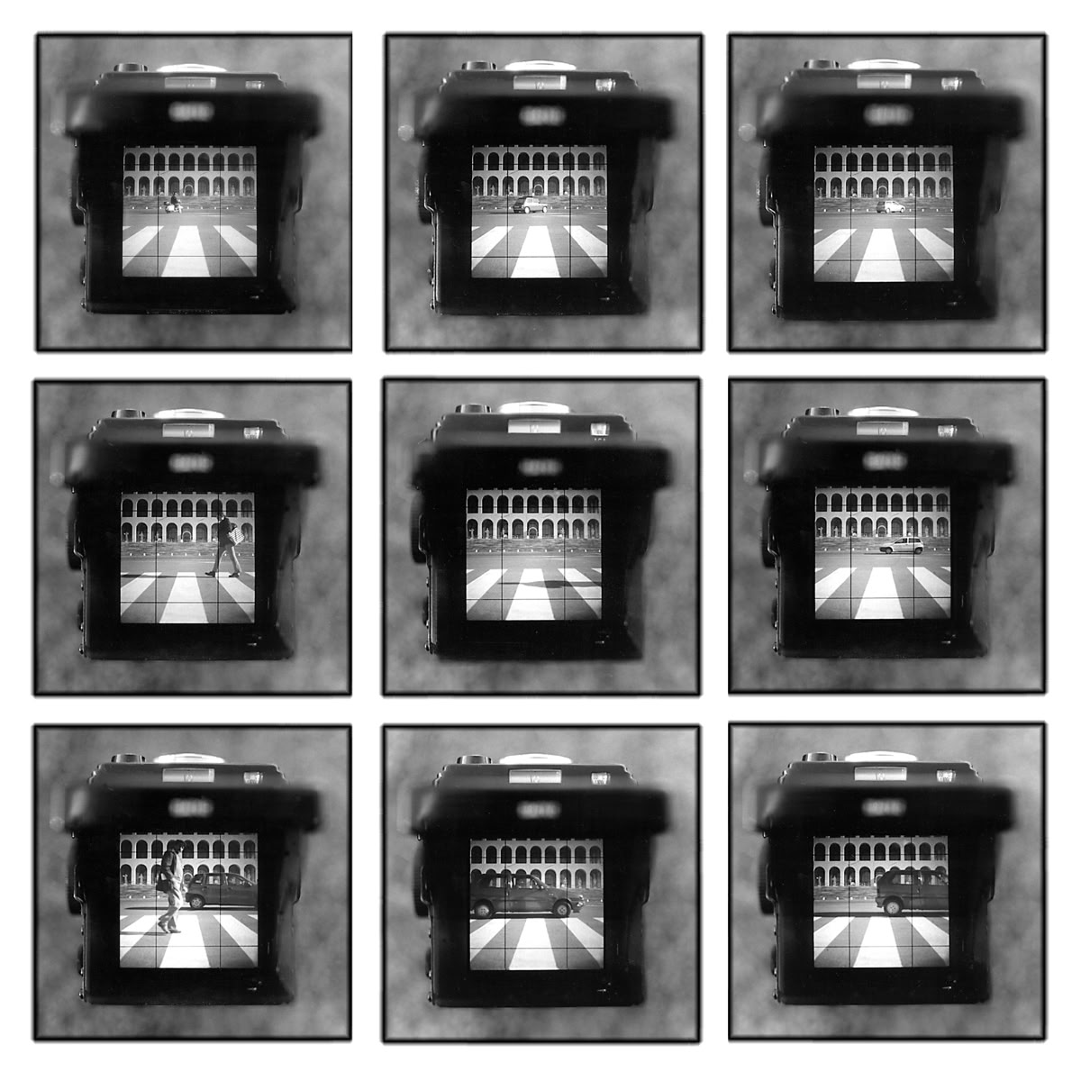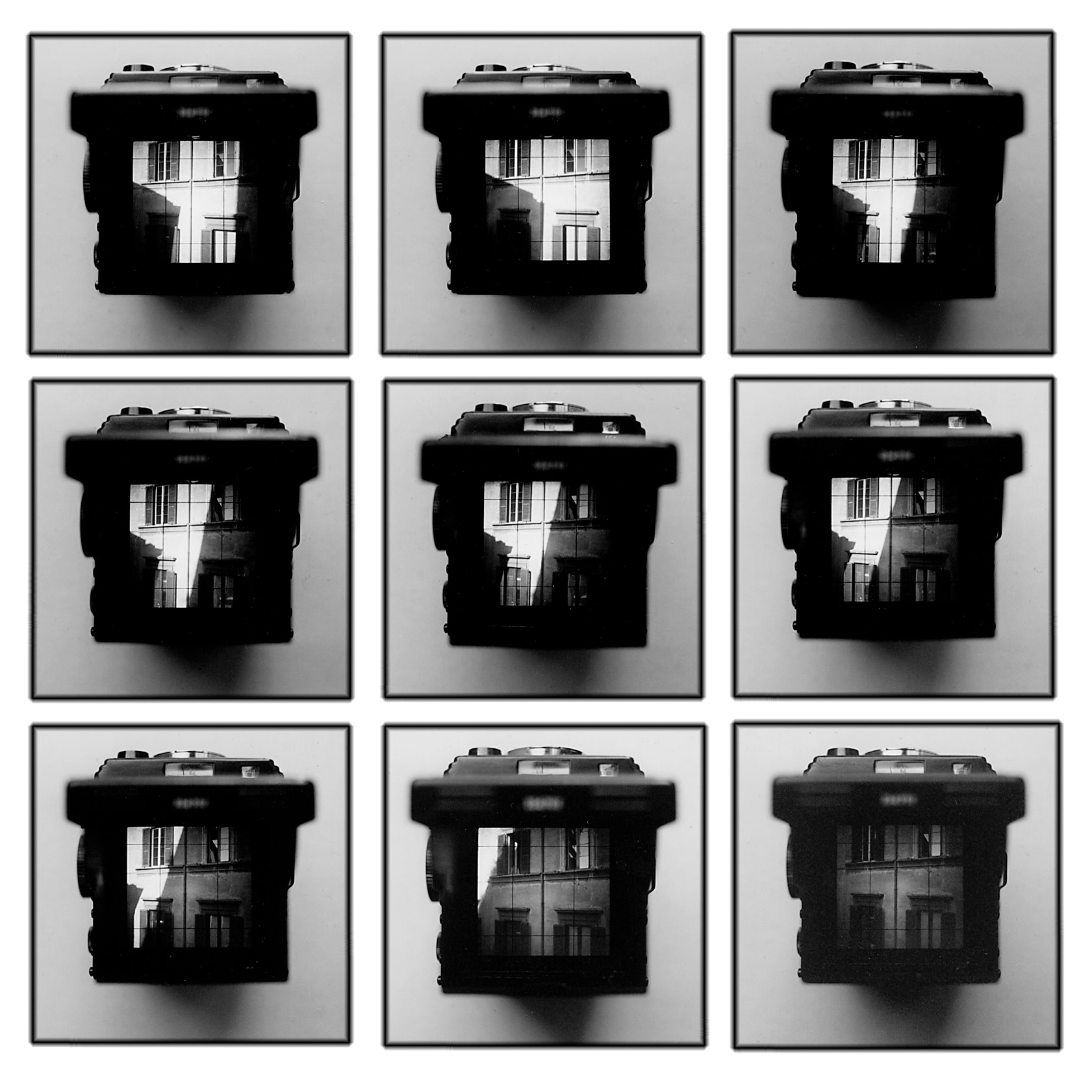 Finestra results on the intention of making the cameras view-finder, which normally is only the limiting window every photographer has to look through, become the focus of attention. This „picture“ always shows a selected part of the whole scene, and so I combine the detail with an additional level: those which is in a right angle to the image itself. The subjects mainly deal with the parameters of time, light and shape - the basics of photography. (Michael Michlmayr / June 1998)