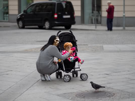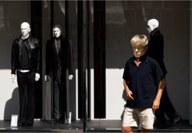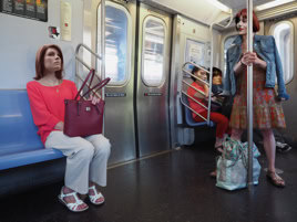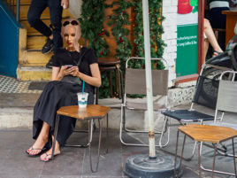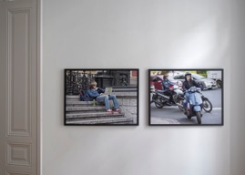 Public Scenes are scenic portraits taken primarily in urban public spaces, based on classic street photography. The pictures are primarily not staged and the protagonists not arranged. They are found everyday situations, although in our time it is not allowed to photograph them for legal reasons. Therefore, after the photograph is taken, a staging is created, whereby the individual, who outwardly defines himself mainly by his face and is thus recognizable, is anonymized by replacing the heads with portraits of mannequins.