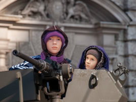 On the one hand, this work poses the question of the apparent interchangeability of the individual in his or her daily actions, and on the other hand, whether it is possible to retain the central message of the recorded image by using stand-ins or by deliberately masking the protagonists in the image and eliminating their facial expressions.
